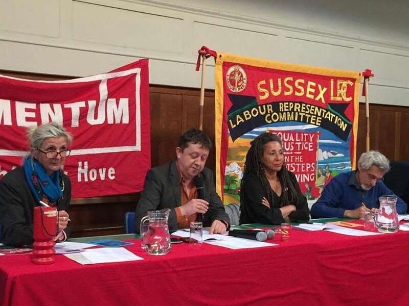 Jackie Walker (center right) at a meeting in June. (Momentum Brighton and Hove)